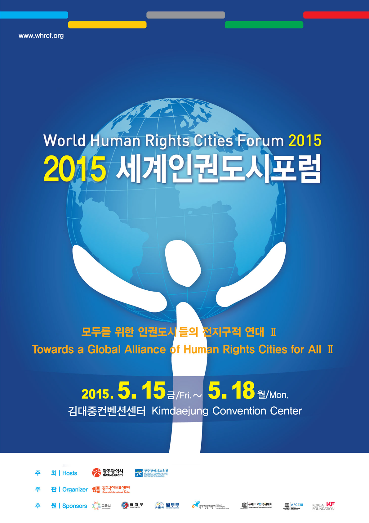 - The Forum, to be held during May 15-18, 2015 at the Kimdaejung Convention Center, Gwangju, the Republic of Korea, under the theme of “Towards a Global Alliance of Human Rights Cities for All, Part 2” will become a platform for the human rights cities to enhance the human rights of citizens through participation and sharing beyond the traditional level of resistance to the authoritarianism while including those who used to be marginalized.